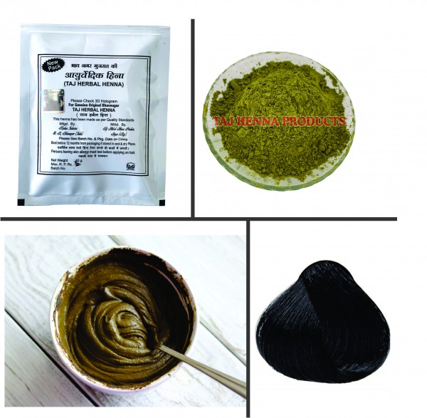 "Black henna", sometimes referred to as "kali mehndi" or "piko" is henna that that has been used from many years mainly as hair dye. Taj Henna is the wholesale manufacturer and supplier of this form of henna in the toxin free state. Henna is an all-natural plant-based dye, which stains the skin or hair a shade of red/brown. The shade of the stain depends on numerous factors including your individual body chemistry, placement, aftercare, and the formulation of the henna paste. Use our Black henna to outshine in the crowd for black, shinny and thick hair. We deliver our products to clients with 100% satisfaction. Our products are clinically tested and well colored. The henna offered by us provides a natural black color to the hair for a longer time period as well as making them long, smooth, silky and strong.  Moreover, it is effective in keeping the head cool. The paste of henna should not be preserved and should be used for the single application. Taj Black henna Powder branded pack is also available in the market. Among the leading brands available in market, Taj Henna Hair color is a premium grade natural-henna based hair color powder with benefits of precious herbs like amla, shikakai, hibiscus & aloe vera or complete nourishment of your hair.
